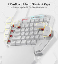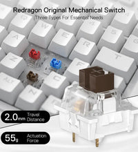 Upgraded Hot-Swap - The upgraded socket is now available on Redragon one-handed keyboard, with more ways to mod, and more fun. The iconic Redragon Blue Switches deliver audible clicky with clear tactile feedback, original mechanical feel.